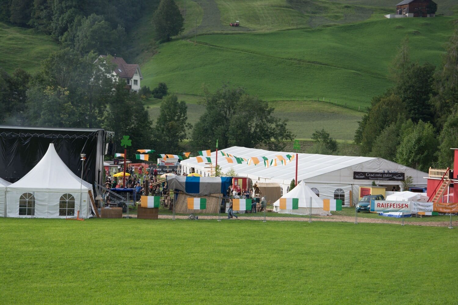 Petrus meinte es dieses Jahr gut mit den Irland-Enthusiasten im oberen Toggenburg. Sowohl am Freitag als auch am Samstag war es bis am Abend sonnig und warm – viele Besucher waren in Röcken oder kurzen Hosen anzutreffen. Die gute Witterung lockte wohl viele spontane Besucher an den Fuss des Säntis: Mit total rund 5‘000 Personen darf das Openair einen neuen Besucherrekord verzeichnen. Entsprechend gross war der Einsatz, der den vielen freiwilligen Helfern abverlangt wurde. Ohne sie wäre ein Anlass wie dieser kaum realisierbar.